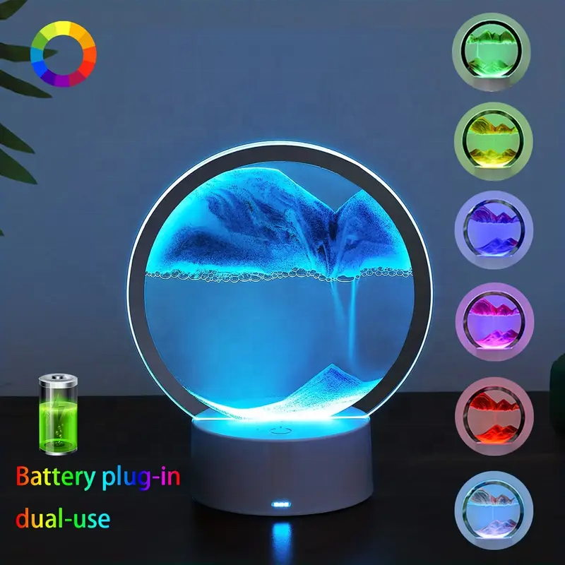 Sand drop Art Dynamic 3D Picture Glass with light